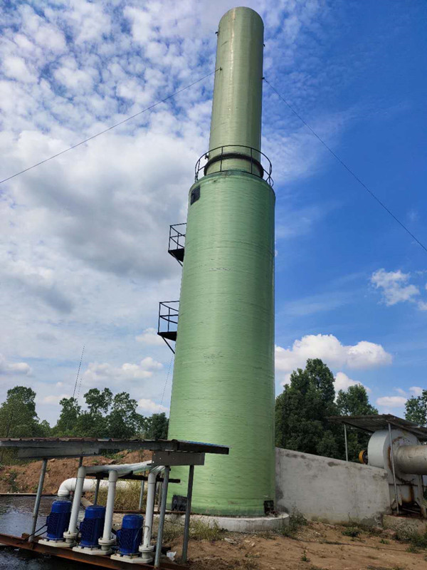 輪胎煉油現場玻璃鋼脫硫塔